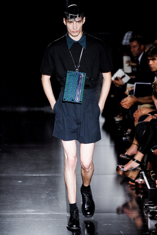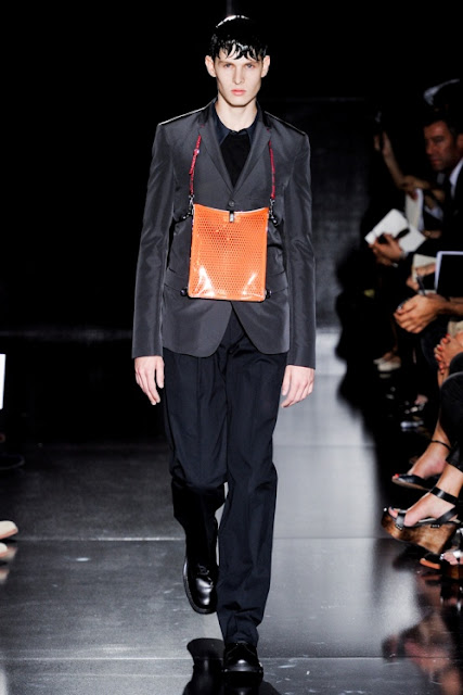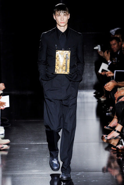 The thing that autonomously stood out to me in this line is the broad array of neck bags that hung from the models necks.Alternate to a neck trinket or a metrosexualized sachel,they were intricately placed and well executed with rich yet subtle exotic prints and lucid colors that could ignite an accessory junkies sense.